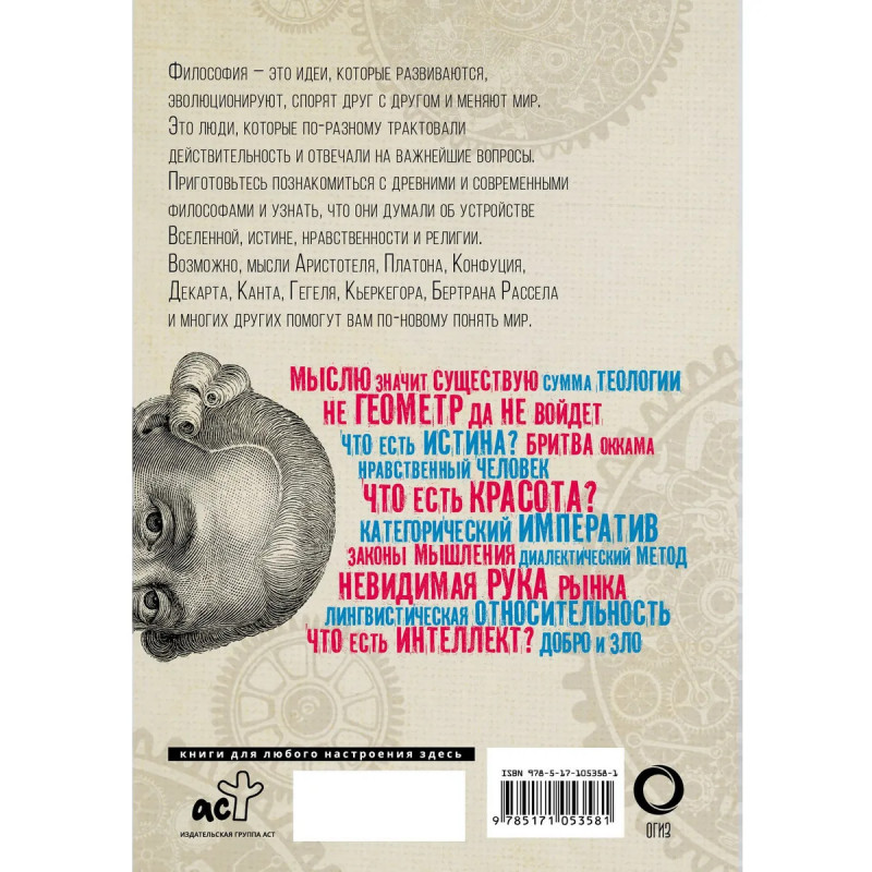 Философия это идеи, которые развиваются, эволюционируют, спорят друг с другом и меняют мир. Это люди, которые по-разному трактовали действительность и отвечали на важнейшие вопросы. Приготовьтесь познакомиться с древними и современными философами и узнать, что они думали об устройстве Вселенной, истине, нравственности и религии. Возможно, мысли Аристотеля, Платона, Конфуция, Декарта, Канта, Гегеля, Кьеркегора, Бертрана Рассела и многих других помогут вам по-новому понять мир.