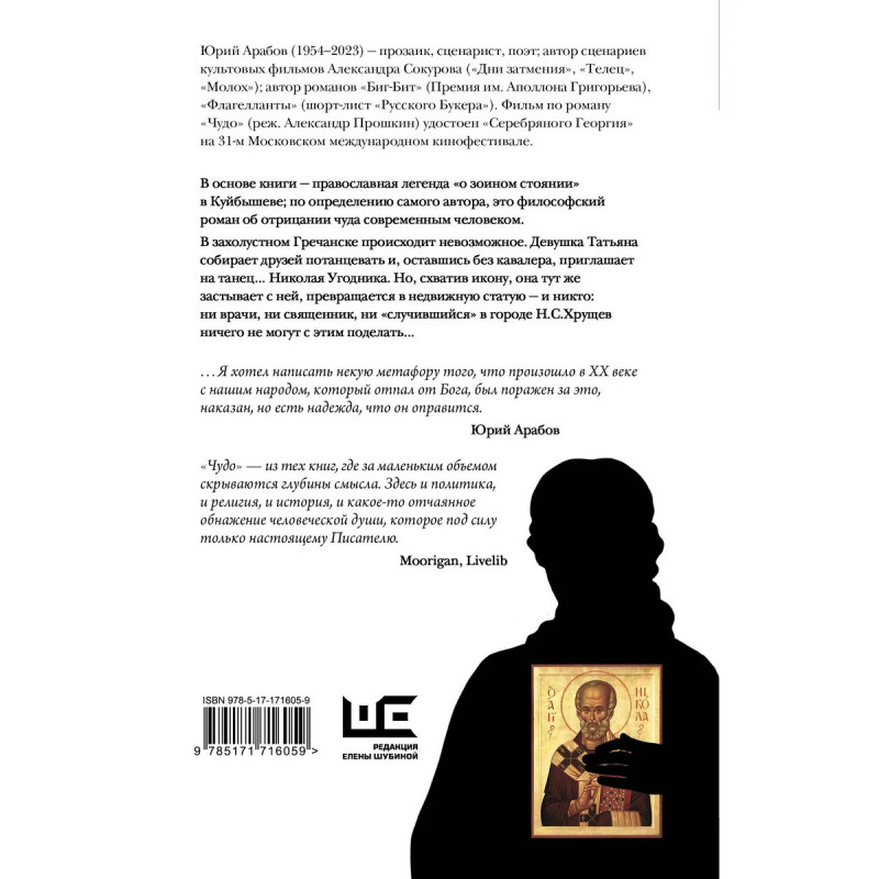 - Переиздание бестселлера в серии «Новая русская классика». - Роман Юрия Арабова основан на православной легенде о «Зоином стоянии». События происходят в Куйбышеве (ныне Самара) в 1956 году. Девушка Зоя Карнаухова, не найдя партнера, приглашает на танец икону святителя Николая Чудотворца и, прикоснувшись к ней, застывает на 128 дней. Врачи, священники и даже сам Никита Хрущев пытаются вывести Зою из «окаменелого» состояния, но безрезультатно. - Юрий Арабов — талантливый сценарист, известный работой над фильмом «Монах и бес». Также автор создал сценарий экранизации романа Евгения Водолазкина «Авиатор» с Константином Хабенским, которая выйдет на экраны в этом году. - Прозу Арабова отличают тонкость, доброта и прекрасный юмор. В книгах он исследует религиозные мотивы, раскрывая их с неожиданной, но всегда светлой стороны. - Фильм по книге в 2009 году снял Александр Прошкин.