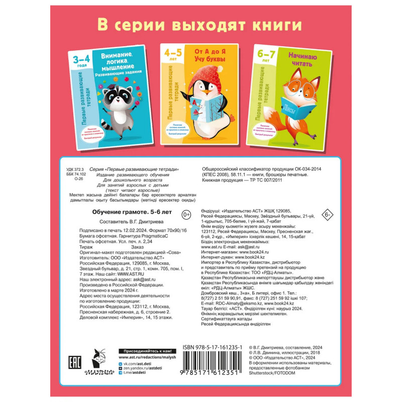 Для того, чтобы легко освоиться в первом классе, ребёнок должен идти в школу с определёнными знаниями и умениями. Навыки, полученные дома, станут фундаментом для успешного обучения. Что же делать родителям? Как заниматься с будущим первоклассником? На помощь приходит универсальный тренажёр «Обучение грамоте. 5–6 лет». Ребёнок научится писать печатаные и письменные буквы. Эти знания необходимы будущему первокласснику для развития навыка чтения и правильного письма. Ребёнок научатся правильно держать ручку, разовьёт мелкую моторику, зрительное восприятие, внимательность, аккуратность и усидчивость. Тренажёр подходит как для индивидуальных занятий, так и для групповых.
