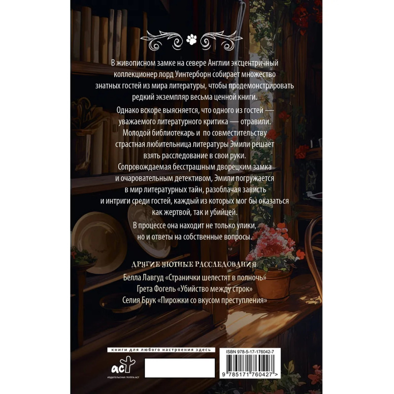 В живописном замке на севере Англии эксцентричный коллекционер лорд Уинтерборн собирает множество знатных гостей из мира литературы, чтобы продемонстрировать редкий экземпляр весьма ценной книги. Однако вскоре выясняется, что одного из гостей — уважаемого литературного критика — отравили при помощи той самой книги. Молодая библиотекарь и страстная любительница литературы Эмили решает взять расследование в свои руки. Сопровождаемая бесстрашным дворецким замка и очаровательным детективом, Эмили погружается в мир литературных тайн, разоблачая зависть и интриги среди гостей, каждый из которых мог бы оказаться как жертвой, так и убийцей. В процессе она находит не только улики, но и ответы на собственные вопросы.