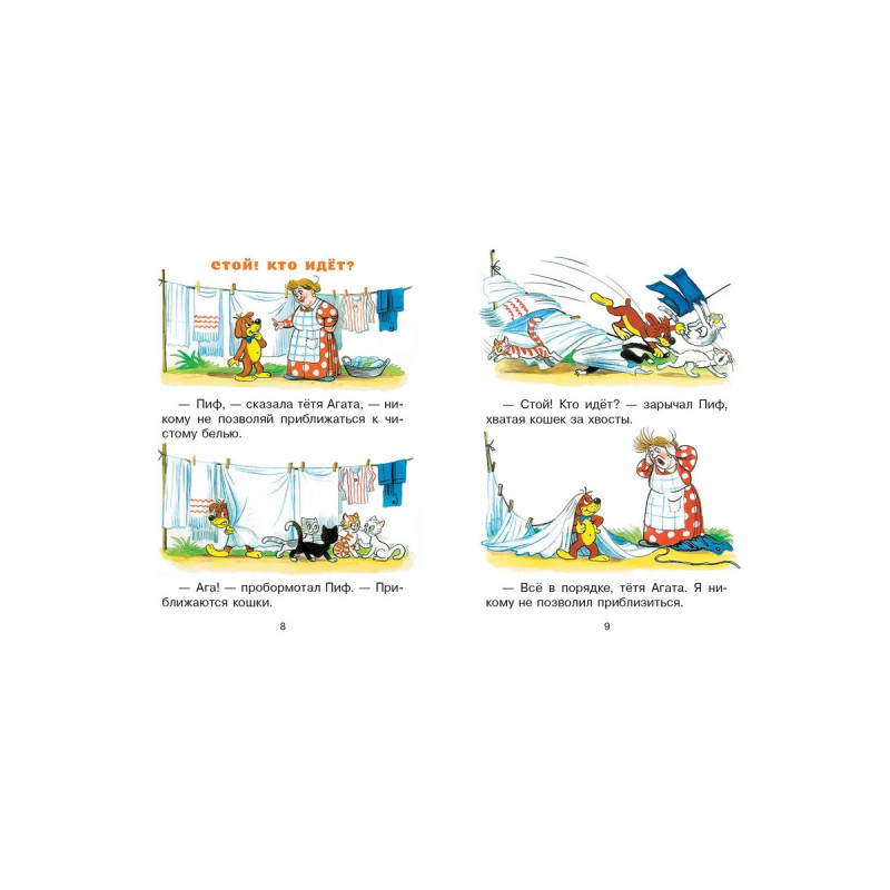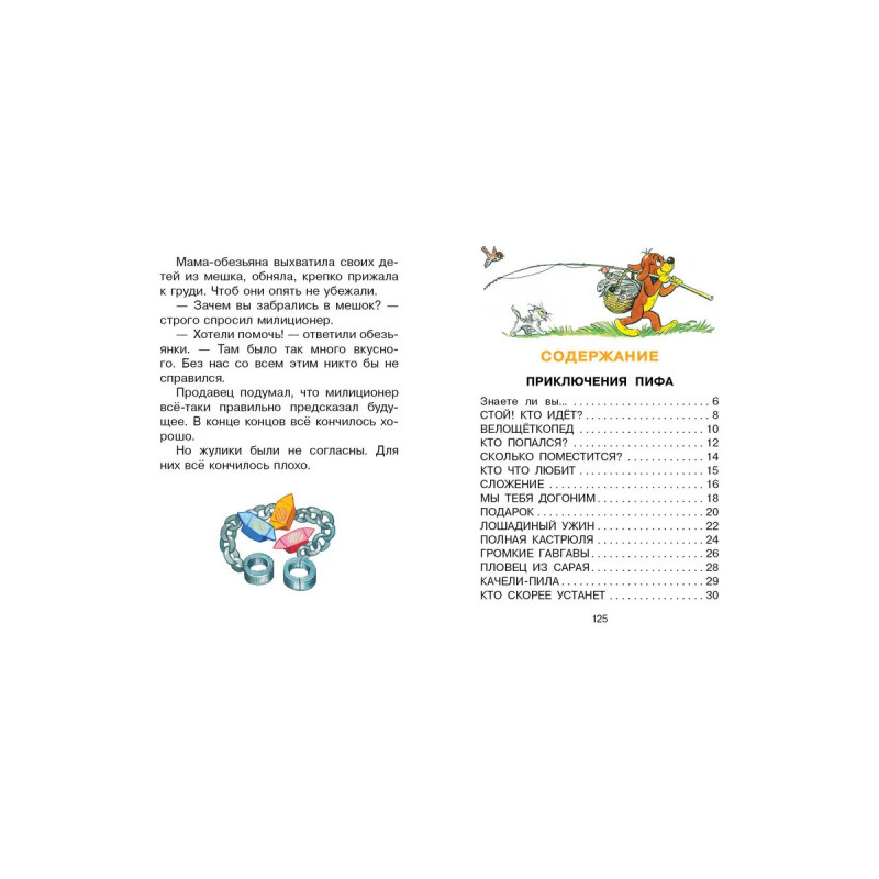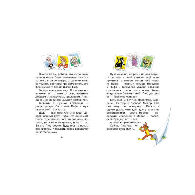 Познакомьтесь с Пифом – озорным французским псом! Захватывающие истории из его жизни записал Григорий Остер, а иллюстрации к ним создал Владимир Сутеев. Неуёмная энергия и богатая фантазия Пифа превращает любую бытовую ситуацию в захватывающее приключение! В этой книге собраны и другие сказки Григория Остера: сказки из цикла «Котёнка по имени Гав» с иллюстрациями В. Сутеева, а также приключения обитателей зоопарка в сказках «Гирлянда из малышей» и «Обезьянки и грабители», проиллюстрированных Ольгой Боголюбовой.