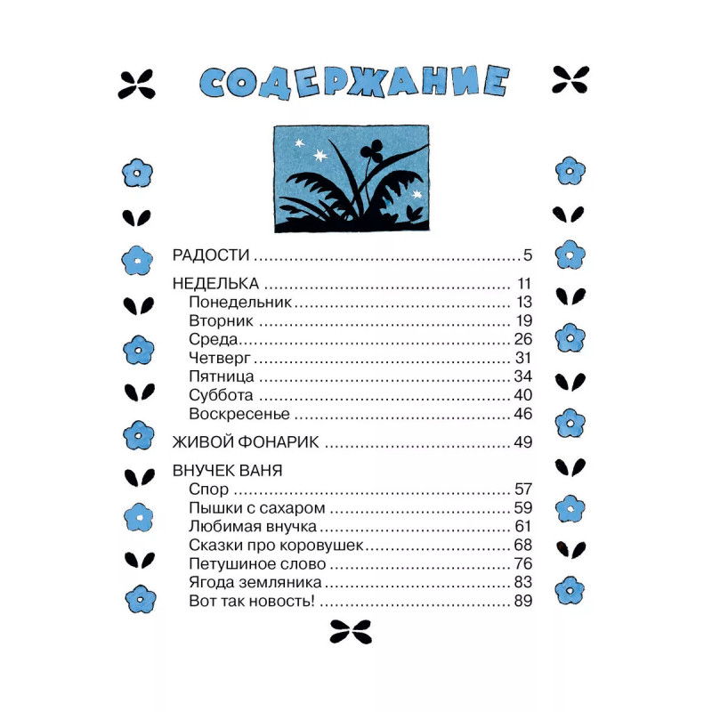 Любовь Фёдоровна Воронкова (19061976) детская писательница, журналист и переводчик. Она написала множество рассказов и повестей для детей. В сборник вошли четыре произведения автора: "Радости", "Живой фонарик", "Неделька" и "Внучек Ваня". В них писательница раскрывает детский мир девчонок и мальчишек из деревни. Маленьким героям Л. Воронковой интересно всё, что связано с природой и сельскими животными: увидеть, как вылупляется из яйца цыплёнок, спасти от пчёл маленького Васятку, услышать бабушкину сказку про непослушную корову Чернушку, поехать вместе с отцом верхом на коне в колхозное поле. Простые рассказы Л. Воронковой, написанные с неподдельной любовью к деревенской жизни, обязательно понравятся юным читателям. Для младшего школьного возраста.