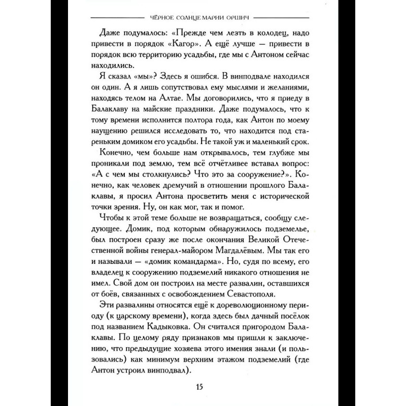 Воронин В. В. Черное солнце Марии Оршич: роман Роман Чёрное солнце Марии Оршич продолжает исследования автором деятельности в Крыму немецкой организации времён Второй мировой войны Аненербе, которое было начато в серии книг Загадки империи. Также данный роман тесно связан с исторической серией Тайны русского Крыма, являясь её естественным продолжением.