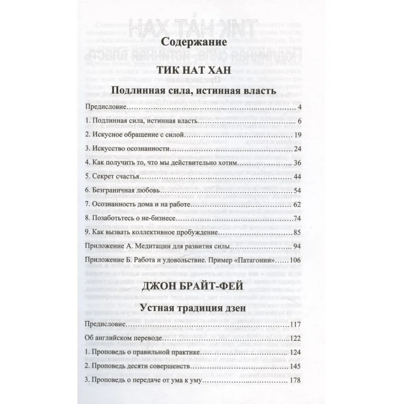 Тик Нат Хан - знаменитый вьетнамский буддистский мастер, поэт, ученый и активный защитник прав человека. В своей книге "Подлинная сила, истинная власть" мастер Тик Нат Хан рассуждает о мимолетности и скоротечности человеческих желаний, мечтаний и страстей и рассказывает нам о подлинных ценностях жизни, способных сделать нас счастливыми. "Наше общество основано на ограниченном определении власти (силы), под которой понимается богатство, профессиональный успех, слава, физическая сила, военная мощь и политический контроль. Я предлагаю вам обратить внимание на еще один тип власти, более могучей силы. Я подразумеваю способность быть счастливым в этот самый миг, в свободе от привязанности, страха, отчаяния, разграничения, гнева и невежества. Эта способность - прирожденное право каждого человека, знаменитого и безвестного, богатого и бедного, сильного и слабого". В своей книге "Устная традиция дзен" американский мастер китайского происхождения Джон Брайт-Фей впервые открывает западным людям ревниво оберегаемые Храмо