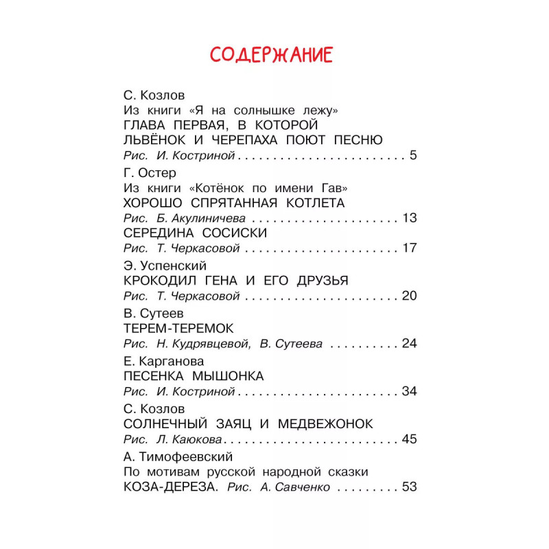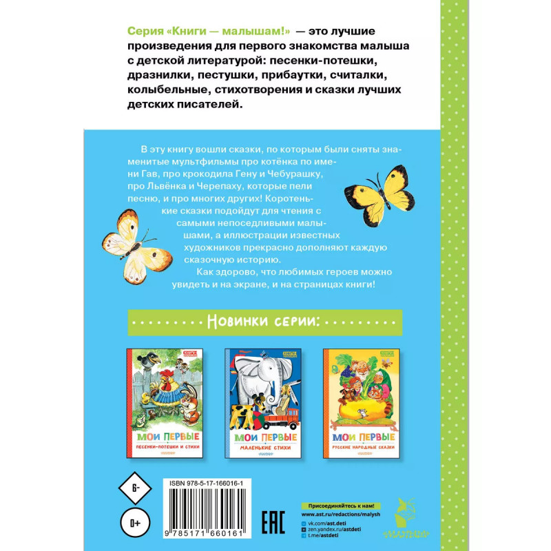 В эту книгу вошли сказки, по которым были сняты знаменитые мультфильмы про котёнка по имени Гав, про крокодила Гену и Чебурашку, про Львёнка и Черепаху, которые пели песню, и про многих других! Коротенькие сказки подойдут для чтения с самыми непоседливыми малышами, а иллюстрации известных художников прекрасно дополняют каждую сказочную историю. Как здорово, что любимых героев можно увидеть и на экране, и на страницах книги!