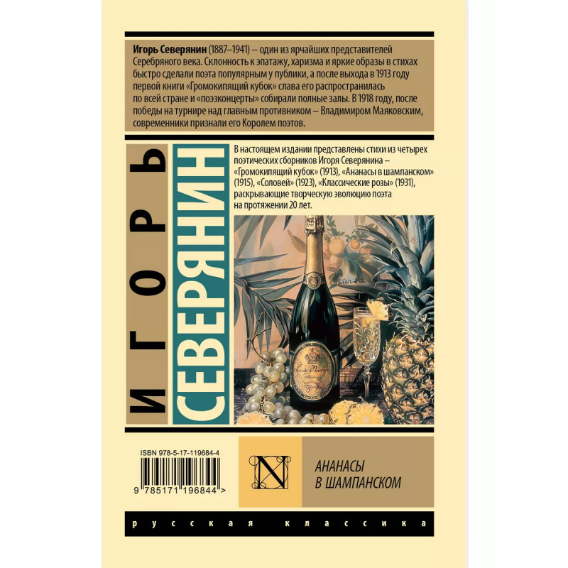 В настоящем издании представлены стихи из четырех поэтических сборников Игоря Северянина "Громокипящий кубок" (1913), "Ананасы в шампанском" (1915), "Соловей" (1923), "Классические розы" (1931), раскрывающие творческую эволюцию поэта на протяжении 20 лет.
