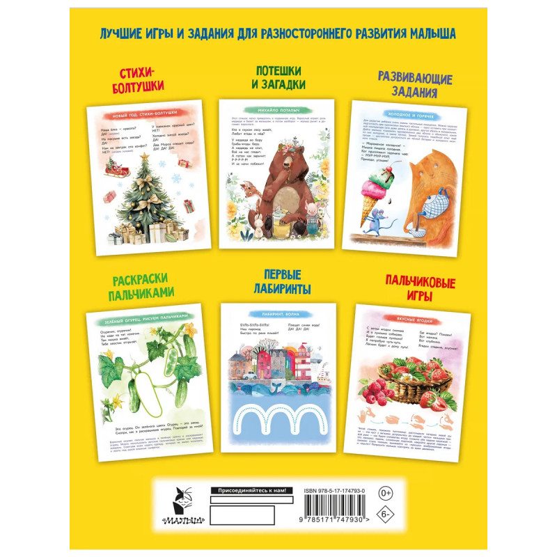 "Уникальная книга для развития мозга. Самый эффективный тренажёр. 1+" — это сборник самых эффективных упражнений для разностороннего развития малыша. В книге собраны лучшие пальчиковые игры, фольклорные песенки и потешки, логопедические стихи-болтушки, первые раскраски, а также разнообразные задания, развивающие координацию движений, быстроту реакций, эмоциональный интеллект, память, внимание, логическое мышление.