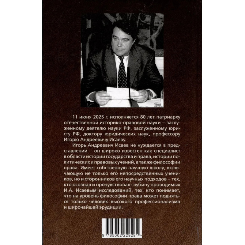 11 июня 2025 г. исполняется 80 лет патриарху отечественной историко-правовой науки – заслуженному деятелю науки РФ, заслуженному юристу РФ, доктору юридических наук, профессору Игорю Андреевичу Исаеву. Игорь Андреевич Исаев не нуждается в представлении – он широко известен как специалист в области истории государства и права, истории политических и правовых учений, а также философии права. Имеет собственную научную школу, включающую не только его непосредственных учеников, но и сторонников его научных подходов – тех, кто осознал и прочувствовал глубину проводимых И.А. Исаевым исследований, тех, кто понимает, что на уровень философии права может подняться только человек высокого профессионализма и широчайшей эрудиции.