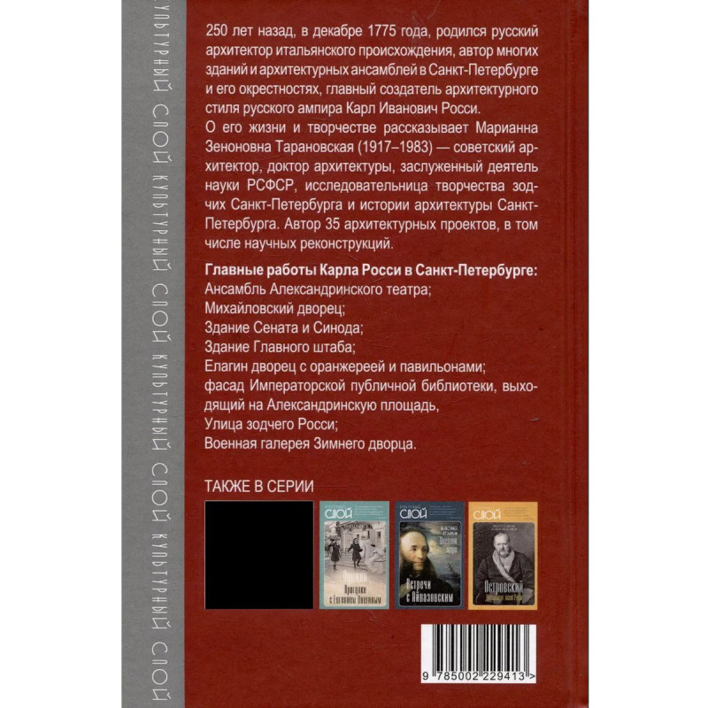250 лет назад, в декабре 1775 года, родился русский архитектор итальянского происхождения, автор многих зданий и архитектурных ансамблей в Санкт-Петербурге и его окрестностях, главный создатель архитектурного стиля русского ампира Карл Иванович Росси. О его жизни и творчестве рассказывает Марианна Зеноновна Тарановская (1917 - 1983) - советский архитектор, доктор архитектуры, заслуженный деятель науки РСФСР, исследовательница творчества зодчих Санкт-Петербурга и истории архитектуры Санкт-Петербурга. Автор 35 архитектурных проектов, в том числе научных реконструкций.