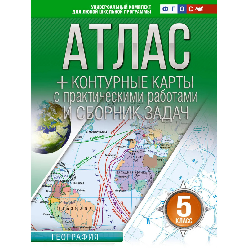 Универсальный учебно-методический комплект по географии для 5-го класса (автор – О.В. Крылова) состоит из атласа, контурных карт с практическими работами и сборника задач по работе с атласом. Их главная цель – привить учащимся интерес к географическим знаниям. Содержание материалов комплекта направлено на усвоение учащимися основ знаний о Вселенной и планете Земля, а также на формирование у них первоначальных картографических умений: определять стороны горизонта и взаиморасположение географических объектов, составлять элементарные географические описания, сравнивать и классифицировать. Созданный по оригинальной авторской методике в соответствии с "Концепцией развития географического образования в Российской Федерации", комплект характеризуется новизной содержания, универсальностью, нацеленностью на развитие творческого начала у школьников. Учебное пособие соответствует требованиям ФГОС и одобрено методистами.