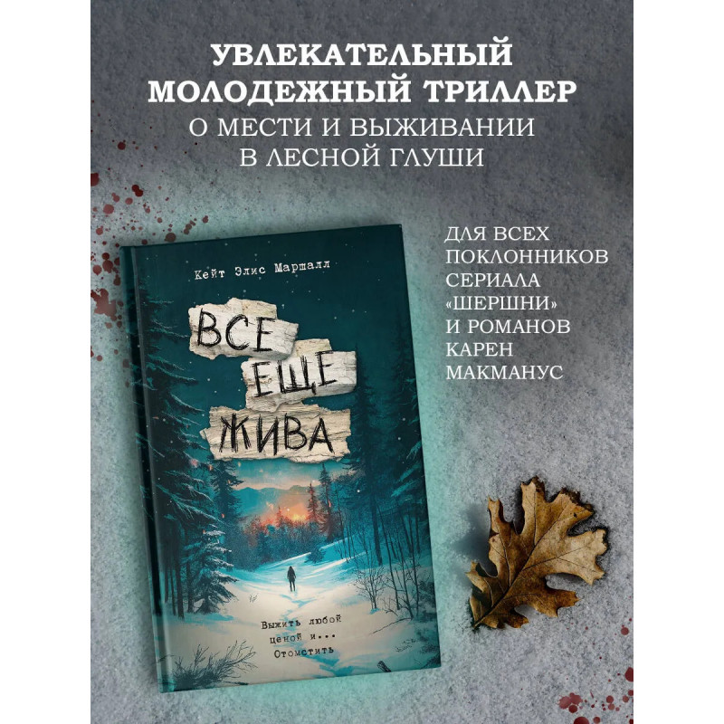 «Еще жива» — дебютный роман американской писательницы Кейт Эллис Маршалл. Это увлекательная история о мести и выживании в лесной глуши с неожиданной главной героиней — старшеклассницей Джесс Купер. Роман идеально подойдет для поклонников фильма «Выживший» и телесериала «Шершни», а также для ценителей книг Карен Макманус и Холли Джексон.