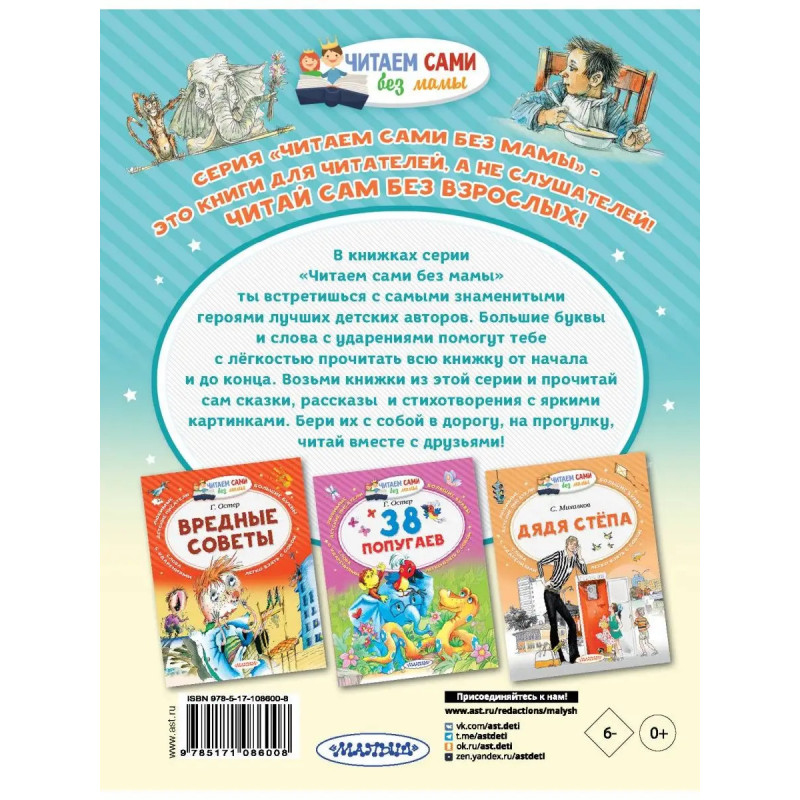 В книжках серии Читаем сами без мамы ты встретишься с самыми знаменитыми героями лучших детских авторов. Большие буквы и слова с ударениями помогут тебе с легкостью прочитать всю книжку от начала и до конца. Возьми книжки из этой серии и прочитай сам сказки, рассказы и стихотворения с яркими картинками. Бери их с собой в дорогу, на прогулку, читай вместе с друзьями! Серия Читаем сами без мамы - это книги для читателей, а не для слушателей! Читай сам без взрослых!