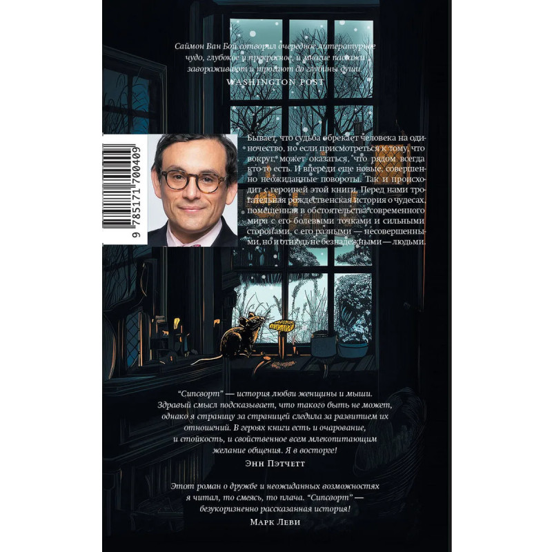 – Трогательный и добрый роман для поклонников книги Фредерика Бакмана «Вторая жизнь Уве» и цикла Ричарда Османа «Клуб убийств по четвергам». – Автор книги Саймон Ван Бой – популярный англо-американский писатель, редактор и преподаватель. Среди его произведений – десятки бестселлеров для взрослых и детей. Книги писателя переведены на 18 языков. – «Сипсворт» – необычная история дружбы пожилой женщины и мышки. Это жизнеутверждающий роман с добрым юмором о надежде, взаимопомощи в трудные времена и поиске своего места в мире – Книга частично вдохновлена биографией Саймона Ван Боя. Прототипом главной героини романа была бабушка писателя, а действие книги происходит в вымышленном английском местечке, которое напоминает городок, в котором вырос автор. – Среди питомцев Саймона Ван Боя было несколько мышей, и именно домашние любимцы вдохновили его на написание книги. Одну из его мышек звали Сипсворт. – Книгу высоко оценили не только критики и читатели, но и коллеги Саймона Ван Боя.