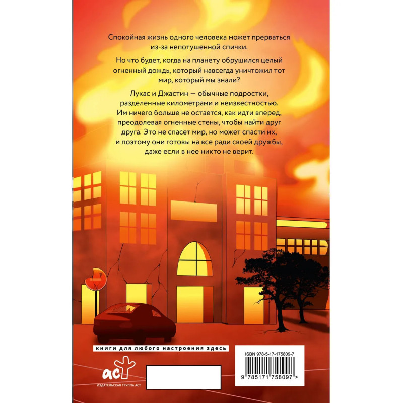Спокойная жизнь одного человека может прерваться из-за непотушенной спички. Но что будет, когда на планету обрушился целый огненный дождь, который навсегда уничтожил тотмир, который мы знали? Лукас и Джастин — обычные подростки, разделенные километрами и неизвестностью. Им ничего больше не остается, как идти вперед, преодолевая огненные стены, чтобы найти друг друга. Это не спасет мир, но может спасти их, и поэтому они готовы на все ради своей дружбы, даже если в нее никто не верит.