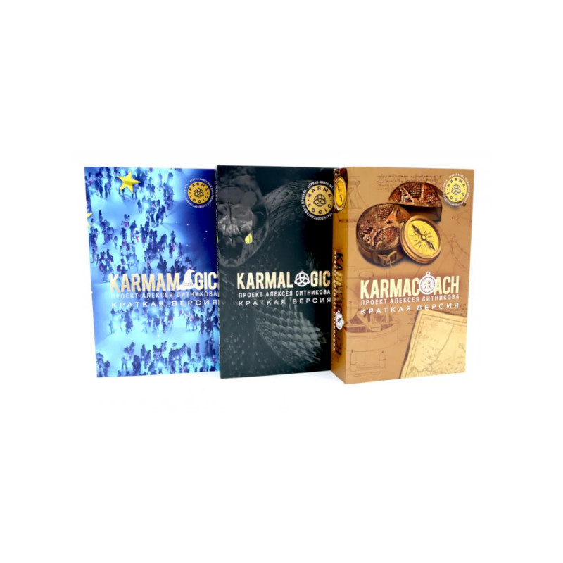 Комплект состоит изтрех книг А.П.Ситникова озаконах судьбы вкраткой версии. KARMACOACH рассказывает о54техниках личностного развития иличностных изменений- через смыслы, мотивы, процессы, состояния, образы ислова. Алесей Ситников иэксперты его команды подробно описывают каждую практику, объясняют, как она работает, почему, при каких запросах она максимально эффективна, какие существуют противопоказания икаков ожидаемый результат. Это фундаментальный труд, который будет интересен как профессиональным психотерапевтам икоучам, которые хотят эффективно помогать другим, так илюдям, желающим самостоятельно изменить свою жизнь клучшему. Краткая версия содержит меньше примеров, меньше рассуждений оконцепции Проекта именьше дополнительной информации. Это справочник по54техникам личностного развития, который удобно носить ссобой ииспользовать каждый день. Книга KARMALOGIC- краткая версия обширного исследования знаменитого консультанта ипсихотерапевта Алексея Ситникова, врамках которого онсозда