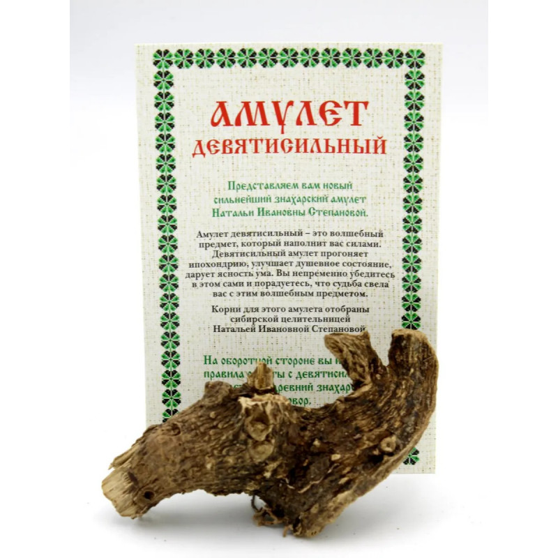 Амулет девятисильный - это волшебный предмет, который наполнит вас силами. Девятисильный амулет прогоняет ипохондрию, улучшает душевное состояние, дарует ясность ума. Вы непременно убедитесь в этом сами и порадуетесь, что судьба свела вас с этим волшебным предметом. Корни для этого амулета отобраны сибирской целительницей Натальей Ивановной Степановой.