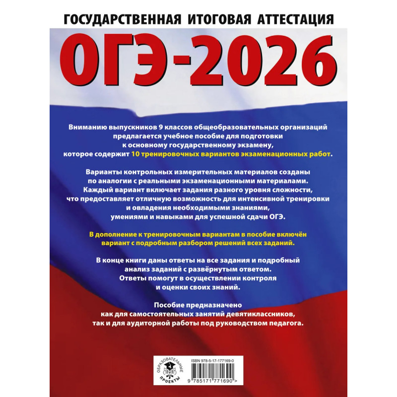 10 вариантов экзаменационных работ по информатике — пособие для учащихся 9-х классов, позволяющее в кратчайшие сроки успешно подготовиться к сдаче основного государственного экзамена. Каждый вариант составлен в полном соответствии с требованиями государственной итоговой аттестации, включает задания разных типов и уровней сложности по основным разделам курса информатики. Структура всех вариантов едина. Каждый из них состоит из 2-х частей и включает 15 заданий. Особенностью данного сборника является вариант с подробным разбором каждого задания. Представленные алгоритмы будут полезны при проверке и оценке своих навыков и умений в решении типовых экзаменационных заданий. В конце книги даны ответы на все задания и подробный анализ заданий с развёрнутым ответом с критериями оценки. Материалы сборника могут быть использованы для планомерного повторения изученного материала и тренировки в выполнении заданий различного типа при подготовке к экзамену.