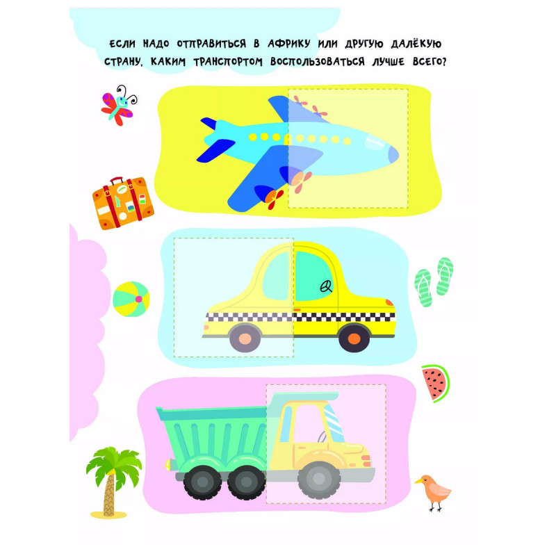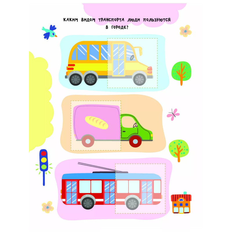 Транспорт. "Невозможно развивать мелкую моторику, внимание и одновременно изучать что-то новое", - скажут родители. Но это реально, если на помощь придёт замечательная книга "Транпорт". Малыш подбирает к каждой картинке подходящую наклейку-половинку, а затем аккуратно наклеивает её в нужное место. На первый взгляд кажется, что это легко. Но на самом деле ребёнок должен приложить очень много усилий! Юный ученик тренирует мелкую моторику и координацию движений - важные навыки для письма. Занимаясь, ребёнок развивает внимание, аккуратность, зрительное восприятие, память и логическое мышление. Если с первого раза не получится наклеить ровно - не беда! Ведь наклейку можно отклеить и легко повторить попытку снова. А ещё из книги малыш узнает, какие виды транспорта бывают - автобусы, самолёты, трамваи, велосипеды и т. д. Вперёд - навстречу новым знаниям!