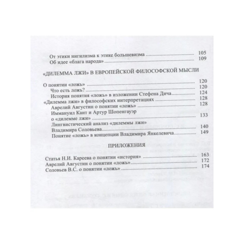 Философское наследие Владимира Соловьева чрезвычайно многообразно и актуально, оно не просто связано с историей европейской философской мысли, но является ее неотъемлемой частью. Автор данного сборника обращается к самым различным аспектам философского наследия Вл. Соловьева; исследует соловьевские понятия "стыд", "совесть" и "ложь", анализирует историю философской интерпретации "дилеммы лжи", подвергает критике основы марксистской теории нравственности и выясняет отношение Вл. Соловьева к теории исторического познания. . Для философов, историков, студентов и аспирантов соответствующих специальностей, а также широкого круга читателей...