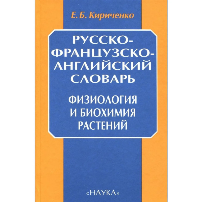 Словарь содержит термины и понятия по основным разделам современной физиологии и биохимии растений, рост и развитие, водный режим, минеральное питание, фотосинтез, дыхание, биосинтез и катаболизм нуклеиновых кислот и белков, липидов, углеводов, пигментов и вторичных соединений. Словарь имеет алфавитный указатель терминов.Предназначен для научных работников, преподавателей и переводчиков литературы по физиологии и биохимии растений и специалистов по биотехнологии растений и растениеводству.