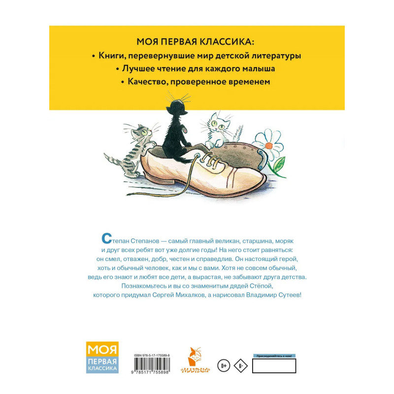 Cтепан Степанов — самый главный великан, старшина, моряк и друг всех ребят вот уже долгие годы! На него стоит равняться: он смел, отважен, добр, честен и справедлив. Он настоящий герой, хоть и обычный человек, как и мы с вами. Хотя не совсем обычный, ведь его знают и любят все дети, а вырастая, не забывают друга детства. Познакомьтесь и вы со знаменитым дядей Стёпой, которого придумал Сергей Михалков, а нарисовал Владимир Сутеев!