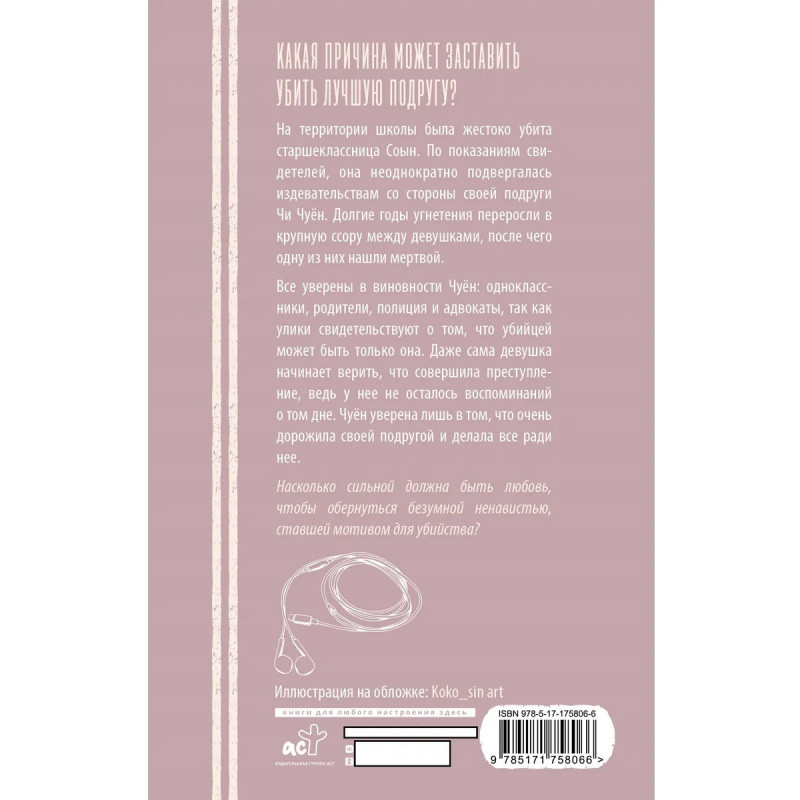 – Новинка серии «Хиты Азии. Их история». Книги, раскрывающие социальные проблемы с необычной стороны. – Глубокая, эмоционально заряженная история о дружбе, школьном буллинге и грани между любовью и ненавистью. – Для поклонников книг «Конечно, я тебя…», «Айдол: смертельный дебют» и азиатских драм с социальной проблематикой. – Автор романа — корейская писательница Ли Кконним, получившая Гран-при 8-й Молодежной литературной премии Мунхакдонне за роман «Пересеку время ради тебя».