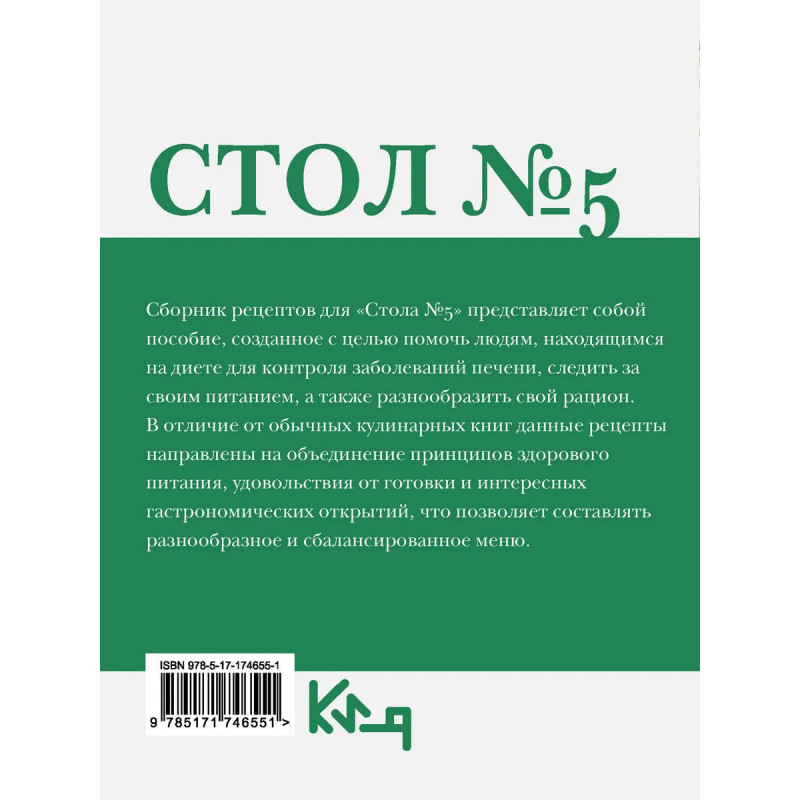 Cборник рецептов для «Стола №5» представляет собой пособие, созданное с целью помочь людям, находящимся на диете для контроля заболеваний печени, следить за своим питанием, а также разнообразить свой рацион. В отличие от обычных кулинарных книг данные рецепты направлены на объединение принципов здорового питания, удовольствия от готовки и интересных гастрономических открытий, что позволяет составлять разнообразное и сбалансированное меню.