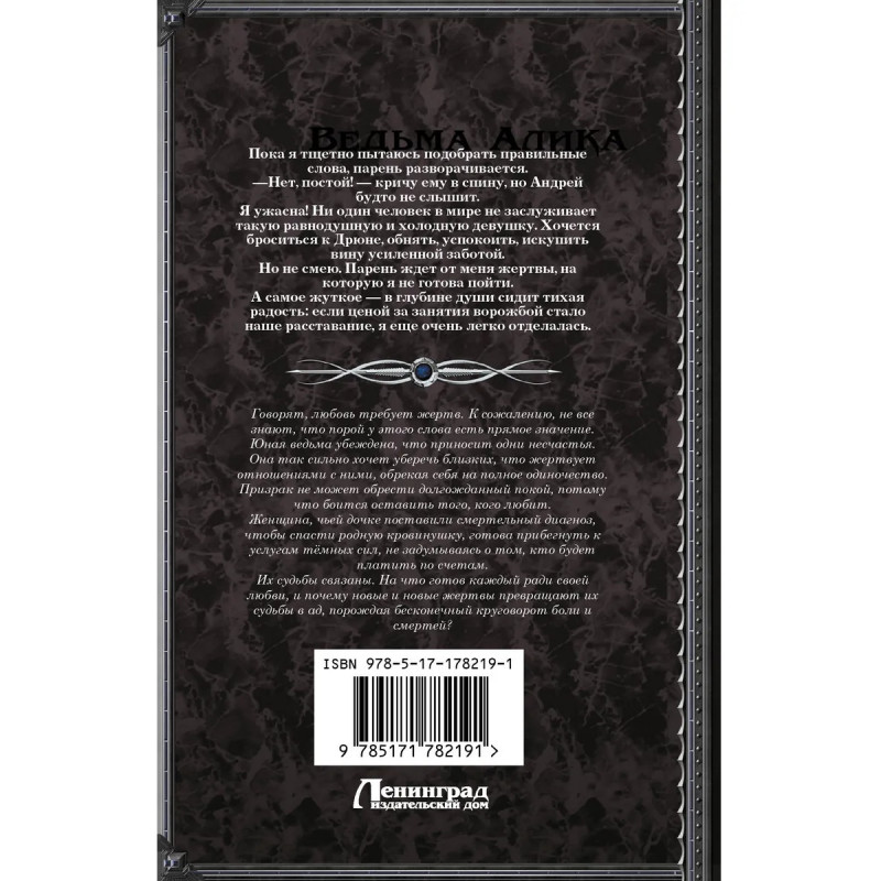 - Лихо закрученный детективный сюжет. Во время написания книгу читали более ста человек, и ни один не смог вычислить «злодея». - В романе вас ждут: тёмный двойник героини, интрига с кражей судьбы и возможность вместе с ведьмой Аликой разбить цепи древнего проклятия. - Леденящая душу атмосфера мистического триллера. - Неоднозначный антагонист, не сопереживать которому невозможно. – Серия «Другие миры» — лучшее фэнтези современных авторов: от юмористического до героического.