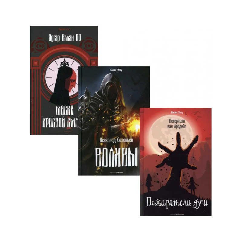 Комплект "Коллекция ужасов. Вып. 1" содержит книги: "Пожиратели душ" Алис было всего семь лет, когда она впервые увидела пожирателей душ - сестер-близнецов, брошенных отцом и превратившихся в чудовищ, которые питаются человеческими страхами. В деревнях края Вид шепчутся, будто сестры - исчадия Зверя, но Алис чувствует с ними странную связь. И когда приходит беда, девочка пускается в путешествие по самым дремучим чащобам темного леса и собственной души. "Волхвы" Россия блистательной эпохи Екатерины И. Граф Калиостро, тайные ордена масонов и розенкрейцеров внедряют опасные мистические учения в умы высшего русского общества, что грозит утерей истинной веры и духовной гибелью. Потому что волхвы - это люди, владеющие тайными знаниями, достигнутыми без Божьей помощи, а значит их знания могут завести человечество в преисподнюю. "Маска Красной Смерти" Эдгар Аллан По считается крупнейшим американским писателем XIX века. Его страшные рассказы, притчи и сказки удивляли и поражали современников. Невероятная фантази