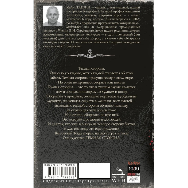 Она есть у каждого, хотя каждый старается об этом забыть. Темная сторона присуща всему в этом мире. Но о ней не принято говорить или писать. Темная сторона — это то, что в лучшем случае является нам в ночных кошмарах, а в худшем и наяву. Оборотни и призраки, ожившие мертвецы и уродливые мутанты, психопаты, садисты и маньяки всех мастей — выходцы с темной стороны обитают повсюду. И на страницах этой книги тоже. Но истории сборника не про них. Это истории про людей и для людей. И для тех, кто уже заглянул на темную сторону бытия, и для тех, кому это еще предстоит. Вы готовы? Тогда вперед, на свой страх и риск! Она ждет вас. ТЕМНАЯ СТОРОНА.
