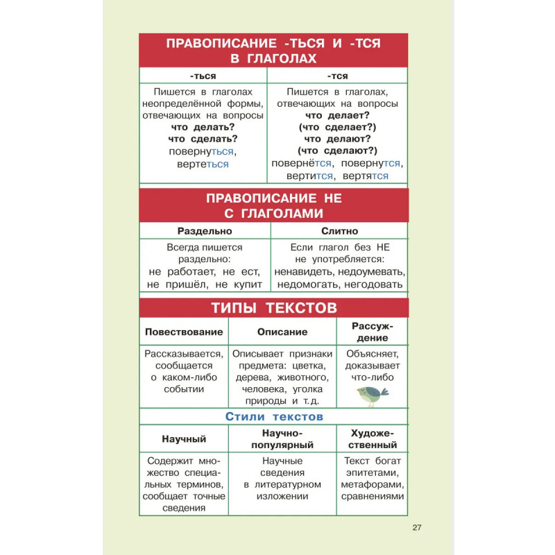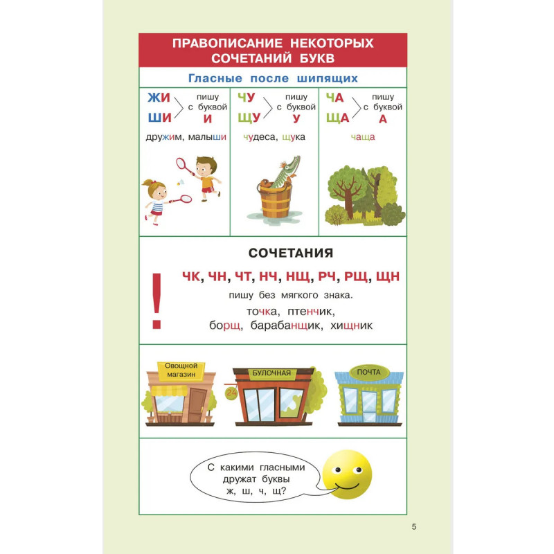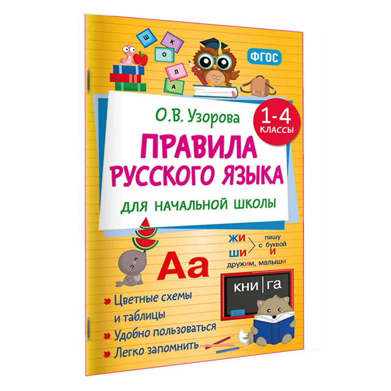 Хотите, чтобы ребёнок преуспевал по русскому языку в школе? Представляем вашему вниманию пособие «Правила русского языка для начальной школы. 1-4 классы», которое основано на авторской методике известного педагога О. В. Узоровой. Все правила в книге представлены в виде цветных таблиц и схем для более лёгкого запоминания. С помощью занятий по пособию ребёнок легко освоит весь материал и сможет успешно подготовиться контрольным и проверочным работам по русскому языку!