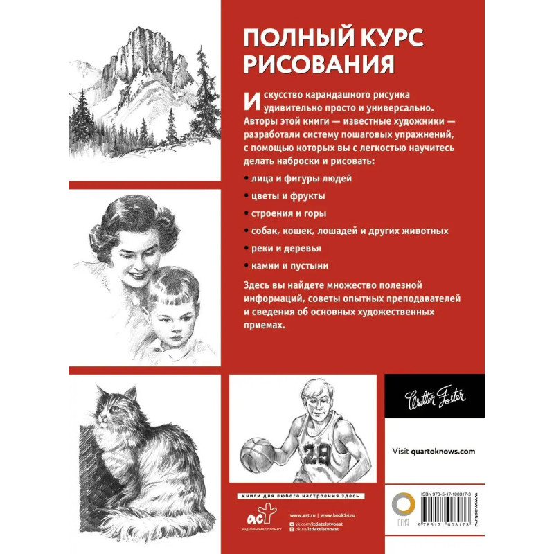 Искусство карандашного рисунка универсально -это и небольшой набросок предмета и сложная композиция, с полным диапазоном тональных оттенков. Художники, работы которых представлены в этой книге, создали свой собственный, особый подход к рисунку, отраженный в многочисленных и универсальных уроках. Авторы научат вас как нарисовать натюрморт, животных, пейзаж и портрет. Следуя инструкциям и описаниям, представленным в этой книге, вы обретете так необходимое вам вдохновение.