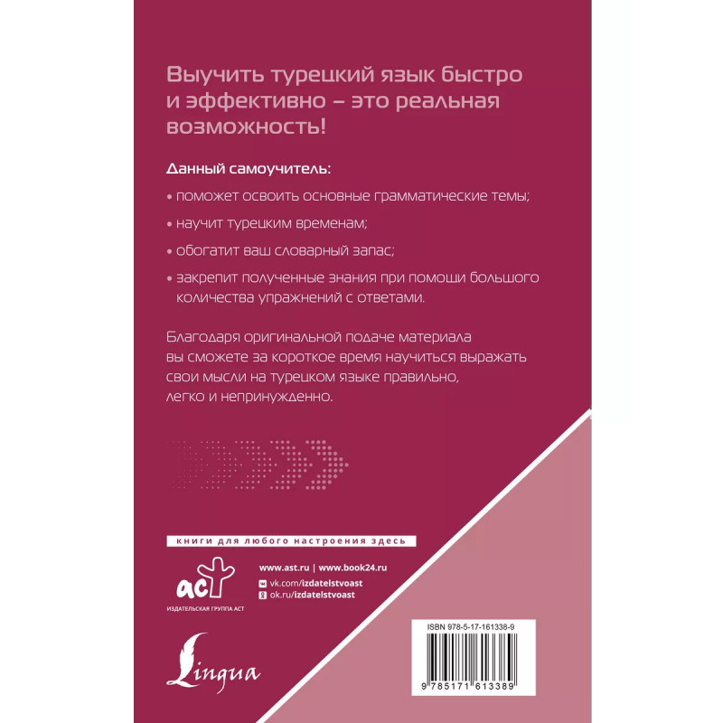 Турецкий язык для тех, кто не знает НИЧЕГО, Методика "Очень быстро". Ахмет Каплан - автор множества справочных и учебных пособий по турецкому языку. Его книги позволяют овладеть языком с нуля и перейти к чтению турецких текстов. Данный самоучитель содержит весь необходимый для изучения турецкого языка с нулевого уровня материал. Пособие охватывает основные темы турецкой грамматики. В каждом разделе приводится базовая лексика, а также упражнения с ключами. Издание будет полезно всем, кто начинает изучать турецкий язык и хочет совершенствовать свои знания. С его помощью вы сможете овладеть языком до уровня B1.