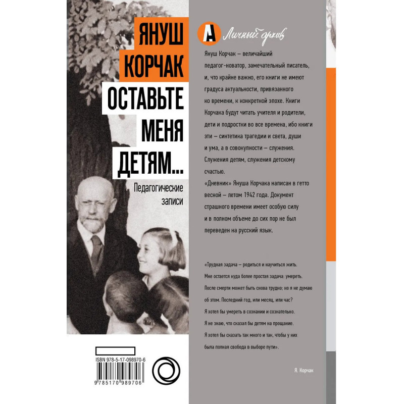 Януш Корчак – величайший педагог-новатор, замечательный писатель, и что крайне важно, его книги не имеют градуса актуальности привязанного ко времени, к конкретной эпохе. Книги Корчака будут читать учителя и родители, дети и подростки во все времена, ибо книги эти - синтетика трагедии и света, души и ума, а в совокупности – служения. Служения детям, служения детскому счастью. "Дневник" Януша Корчака, написан в гетто весной – летом 1942 года – документ страшного времени имеет особую силу и в полном объеме до сих пор не был переведен на русский язык. Это его первая публикация в России.