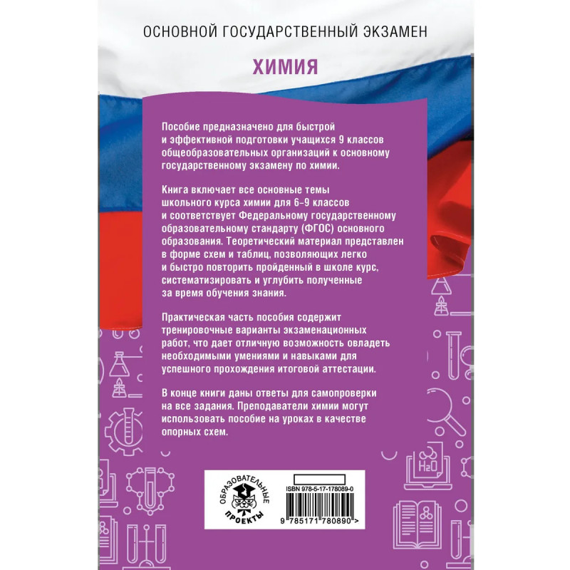 Пособие предназначено для быстрой и эффективной подготовки учащихся 9 классов общеобразовательных организаций к основному государственному экзамену по химии. Книга включает все основные темы школьного курса химии для 6 – 9 классов и соответствует Федеральному государственному образовательному стандарту (ФГОС) основного образования. Теоретический материал представлен в форме схем и таблиц, позволяющих легко и быстро повторить пройденный в школе курс, систематизировать и углубить полученные за время обучения знания. Практическая часть пособия содержит тренировочные варианты экзаменационных работ, что дает отличную возможность овладеть необходимыми умениями и навыками для успешного прохождения итоговой аттестации. В конце книги даны ответы для самопроверки на все задания. Преподаватели химии могут использовать пособие на уроках в качестве опорных схем.
