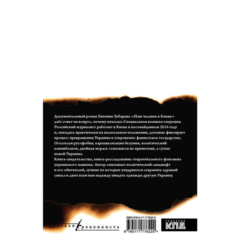 Документальный роман Евгения Зубарева "Наш человек в Киеве" даёт ответ на вопрос, почему началась Специальная военная операция. Российский журналист работает в Киеве в постмайданном 2016 году и, находясь на практически нелегальном положении, дотошно фиксирует процесс превращения Украины в откровенно фашистское государство. Оголтелая русофобия, карнавализация безумия, политический каннибализм, двойная мораль — становятся не приметами, а сутью новой Украины. Книга-свидетельство, книга-расследование отвратительного феномена украинского нацизма. Автор описывает политический ландшафт и его обитателей, лучшие из которых умудряются сохранять здравый смысл и дают всем нам надежду увидеть однажды другую Украину.