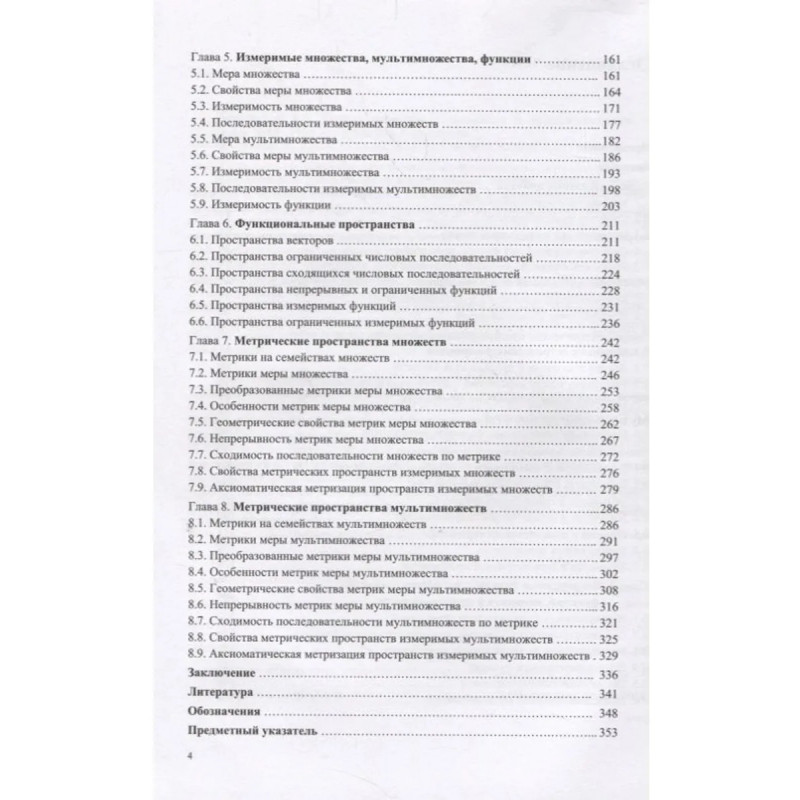 В монографии рассмотрены фундаментальные понятия теории измеримых множеств и мультимножеств. Введены операции над мультимножествами, изучены их свойства. Построена теория меры мультимножества, установлены основные свойства мер множества и мультимножества. Даны определения последовательностей множеств и мультимножеств, введены различные виды сходимости последовательностей, описаны свойства сходящихся последовательностей. Введены и изучены новые классы метрических пространств конечных, ограниченных, измеримых множеств и мультимножеств с разными метриками, порождёнными мерой. Указаны метрические и топологические свойства этих пространств и метрик. Книга адресована научным работникам и специалистам в областях дискретной математики, функционального анализа, поддержки принятия решений, искусственного интеллекта, распознавания образов, языков программирования, математической лингвистики, а также аспирантам и студентам.