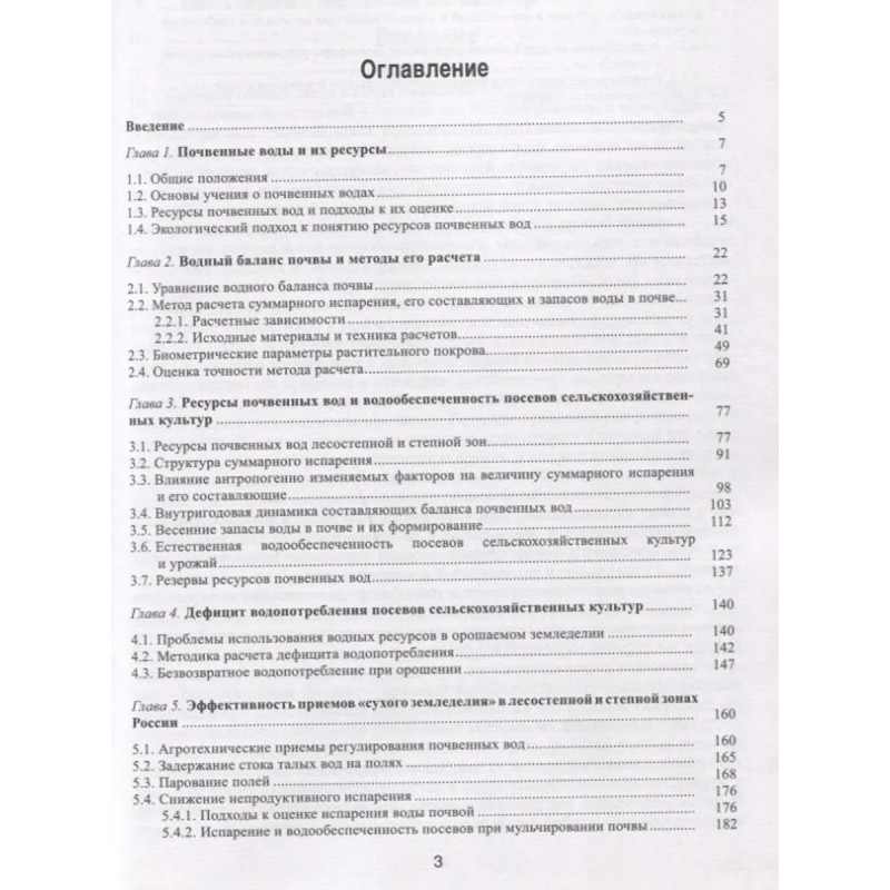 В монографии излагаются методические подходы к оценке ресурсов почвенных вод и их параметров, исследуется пространственная и временная изменчивость водопотребления и водообеспеченности посевов яровой пшеницы в лесостепной и степной зонах Русской равнины. Рассматривается структура суммарного испарения (транспирация и испарение воды почвой) сельскохозяйственного поля и выявляются резервы возможного повышения водообеспеченности посева. Оценивается эффективность агрогидрологических приемов повышения водообеспеченности посевов сельскохозяйственных культур - задержания стока талых вод на полях, зяблевой пахоты, парования полей, мульчирования почвы растительными остатками. Исследуется влияние возможных изменений климата на гидротермические условия и урожай. . Для специалистов в области гидрологии, агрометеорологии, экологии и сельского хозяйства.
