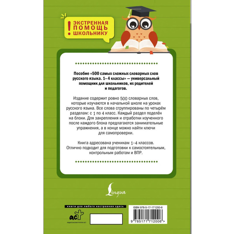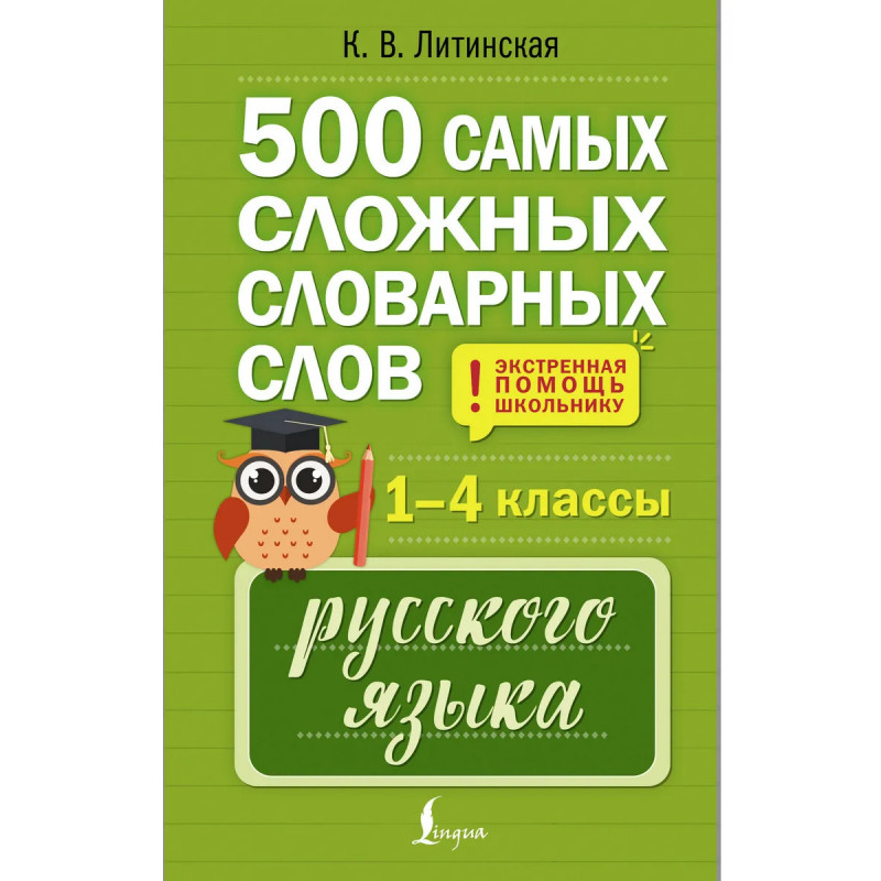 Литинская Ксения Васильевна – преподаватель с многолетним опытом, автор различных учебных пособий для школьников. В данном издании представлено ровно 500 самых сложных словарных слов русского языка, с которыми у учащихся начальной школы чаще всего возникают проблемы. Выучить правописание и закрепить знания помогут занимательные задания. В конце книги находятся ключи для самопроверки. Упражнения можно выполнять прямо на страницах учебника, а удобный формат позволит взять книгу с собой и не даст заскучать даже в длительной поездке. Издание подойдет для учеников начальной школы, родителей и педагогов.