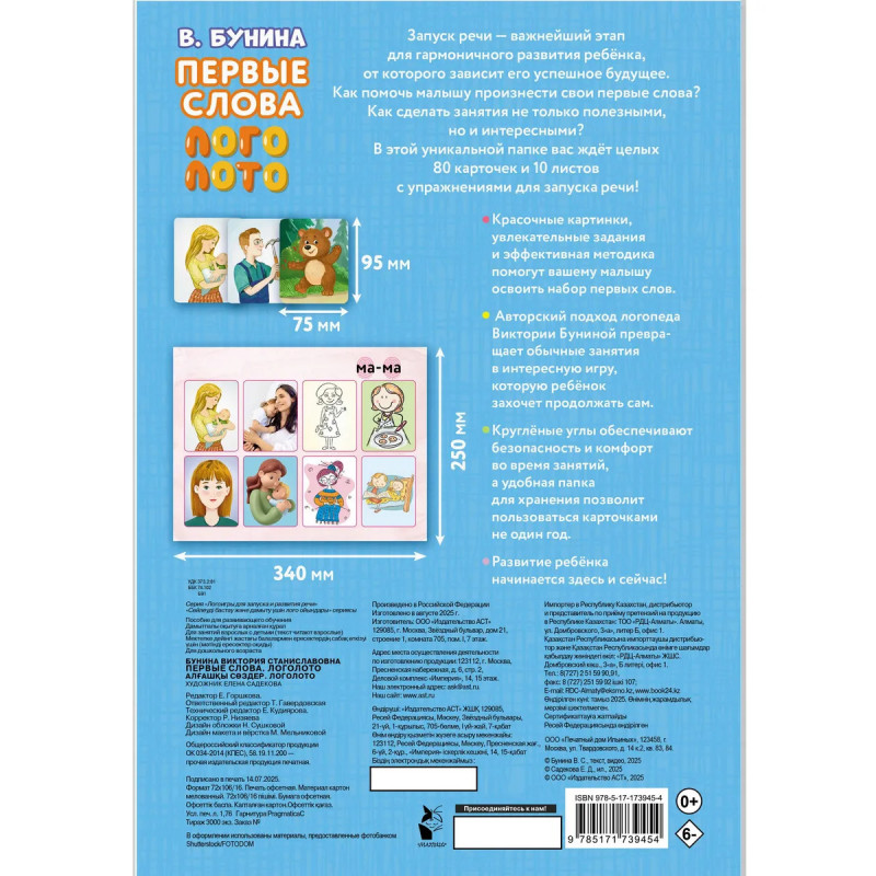 Как важно, чтобы малыш вовремя сказал свои первые осознанные слова! Ведь для развития речи природа отвела очень короткий срок. Что делать, если первые слова никак не хотят появляться у вашего сына или дочки? Очень важна помощь опытного специалиста, детальная диагностика. Так как причин безречья много. Виктория Бунина – логопед с 20-летним опытом работы, автор методики запуска речи у детей. Уже более 10 тысяч благодарных родителей воспользовались ее методикой и добились эффективных результатов. Данное пособие создано на основе этой методики для того, чтобы помочь активизировать первые слова детей с темповой задержкой речи. Задания составлены с учётом основных психологических механизмов речи, что позволяет эффективно стимулировать речевое развитие малышей от 1 года до 3 лет. Увлекательная игра в логолото увлечет даже самых непоседливых мальчишек и девчонок. Методические рекомендации с простым и понятным описанием этапов занятий и видеоподсказки с дополнительными играми обеспечивают качественный результат.