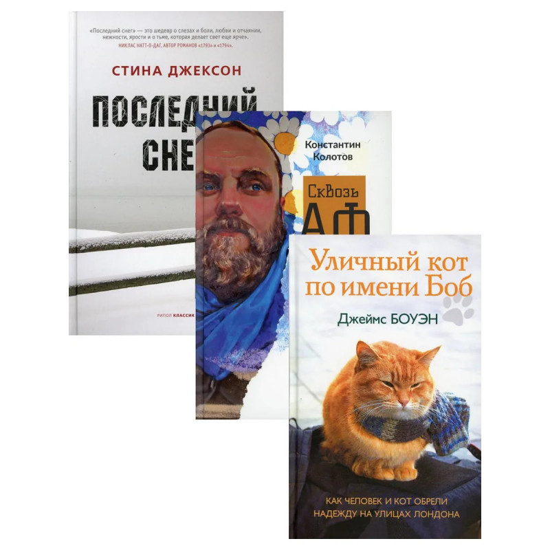 Комплект "Семейный бестселлер" содержит книги: "Уличный кот по имени Боб. Как человек и кот обрели надежду на улицах Лондона" В этой истории два главных героя - Джеймс Боуэн, уличный лондонский музыкант, и рыжий Боб, уличный лондонский кот. Они были бездомными и одинокими, но однажды повстречали друг друга. Джеймс погибал от наркотиков и отчаяния, в его жизни не было никакого смысла, пока в ней не появился четвероногий друг, который помог ему справиться с проблемами, принес удачу и стал настоящим ангелом-хранителем. Теперь Боба и Джеймса (именно в такой последовательности!) прекрасно знают не только жители Лондона, которые встречают их на улицах, в метро и кафе, но и сотни тысяч людей во всем мире. Ролики на Youtube, фотографии на фейсбуке, записи в твиттер, а теперь и книга, написанная Джеймсом Боуэном, рассказывают удивительную историю о дружбе с котом, который изменил его жизнь. "Сквозь Африку. Заметки и размышления путешествинника на деревянном велосипеде" Книга Константина Колотова, современного ро