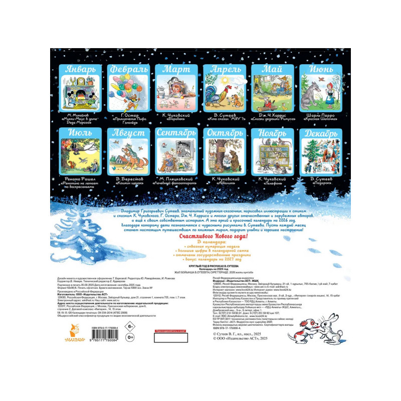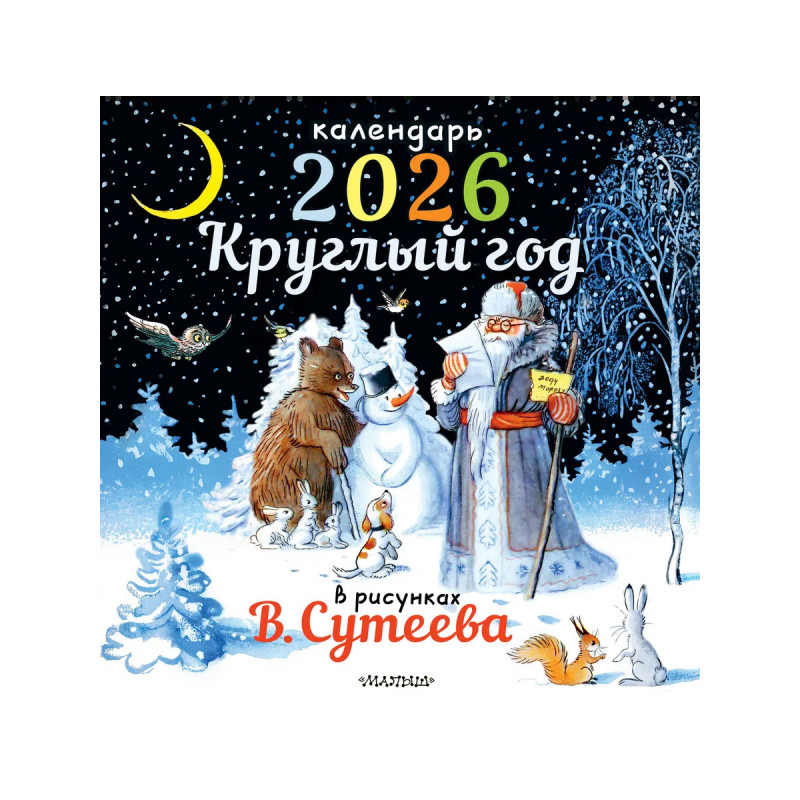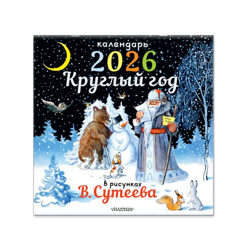 А вы знаете, что Владимир Григорьевич Сутеев, знаменитый художник-сказочник, нарисовал иллюстрации не только к своим собственным историям, но и и к стихам и сказкам К. Чуковского, Г. Остера, Дж. Ч. Харриса и многих других отечественных и зарубежных авторов? Благодаря этому календарю на 2026 год дети познакомятся с этими чудесными рисунками В. Сутеева, на которых выросло не одно поколение читателей. Каждый месяц станет настоящим путешествием по книжным мирам, подарит улыбки и хорошее настроение. В календаре: сквозная нумерация глав; большие цифры в календарной сетке; отмечены государственные праздники; бонус: календарь на 2027 год.