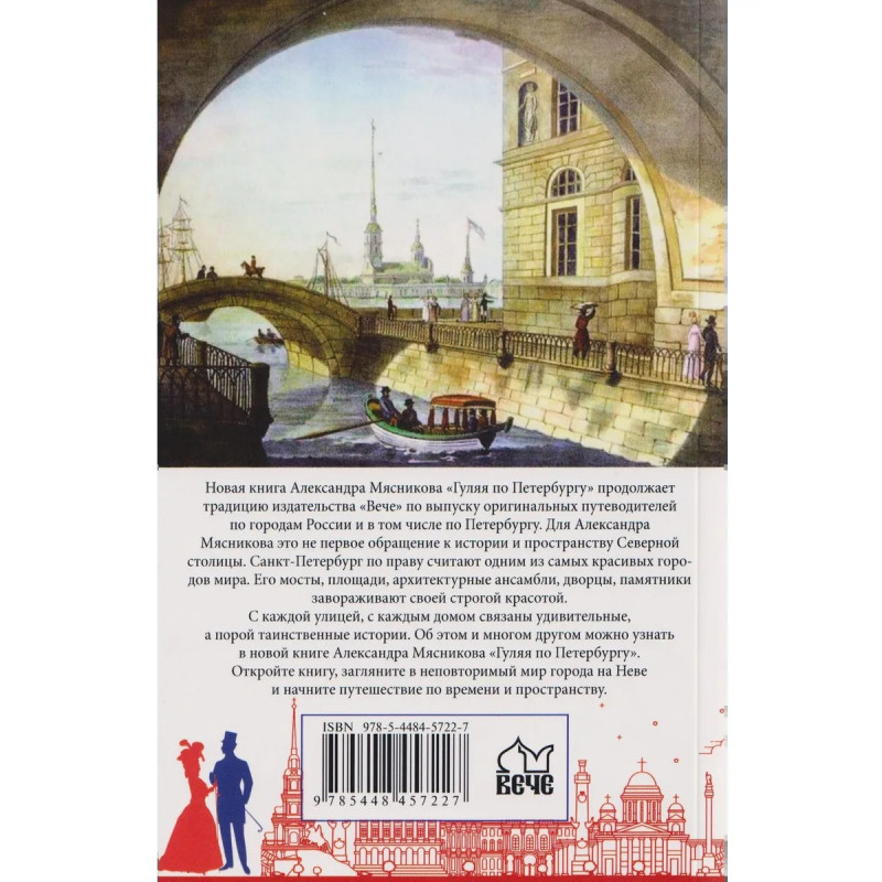 Новая книга Александра Мясникова «Гуляя по Петербургу» продолжает традицию издательства «Вече» по выпуску оригинальных путеводителей по городам России и в том числе по Петербургу. Для Александра Мясникова — это не первое обращение к истории и пространству Северной столицы. Санкт-Петербург по праву считают одним из самых красивых городов мира. Его мосты, площади, архитектурные ансамбли, дворцы, памятники завораживают своей строгой красотой.С каждой улицей, с каждым домом связаны удивительные,а порой таинственные истории. Об этом и многом другом можно узнать в новой книге Александра Мясникова «Гуляя по Петербургу». Откройте книгу, загляните в неповторимый мир города на Неве и начните путешествие по времени и пространству.