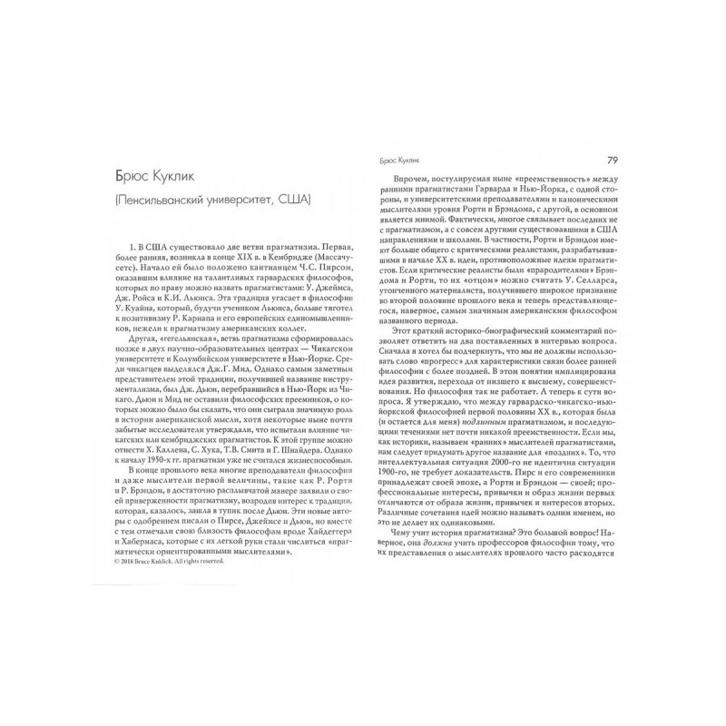 "Чему учит история прагматизма? Какую роль могли бы сыграть прагматисты в диалоге-противостоянии аналитической и континентальной философских традиций? Какое понятие является ключевым для современного прагматизма: "опыт", "социальная практика" или "язык"? На вопросы международного интервью, организованного сектором современной западной философии Института философии РАН, отвечают ведущие философы-прагматисты и исследователи прагматизма из США, Канады, Австралии, Германии, Франции, Швейцарии, Финляндии, Австрии, Испании, Италии, Польши, Китая, Японии, Сингапура, Бразилии и России.