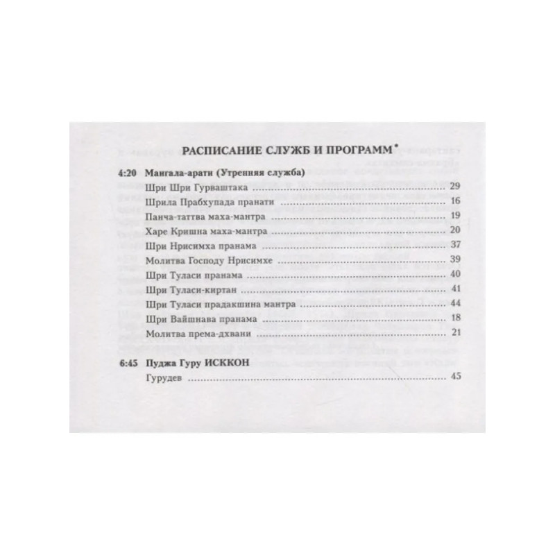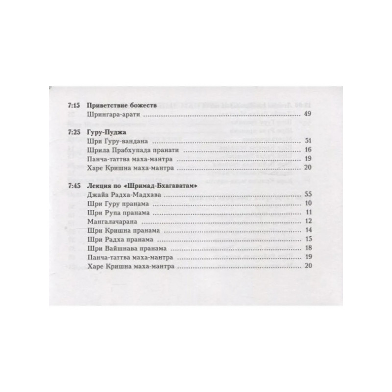 Предлагаемое вниманию читателя издание представляет собой аккуратно и с большой любовью подобранный сборник молитв, фактически составляющих ежедневный литургический цикл, принятый в современной традиции гаудия-вайшнавов.