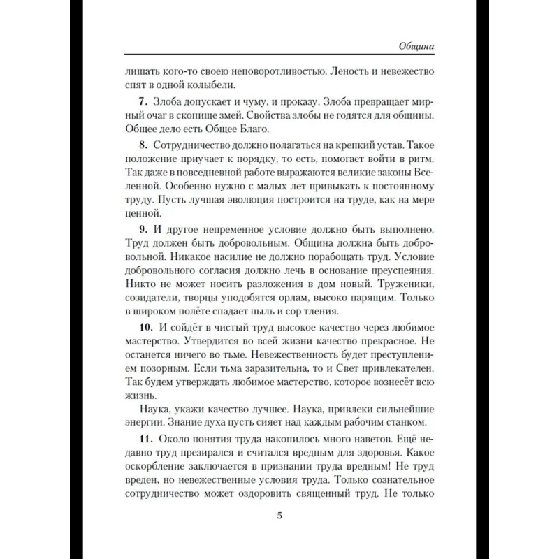 Послания Махатм, Великих Учителей, записанные Е.И. Рерих в книгах «Учение Живой Этики», являются кодексом Космической эволюции человечества. Книга «Община» описывает структуру общества, соответствующую требованиям Нового времени, построенную на принципах