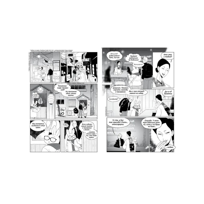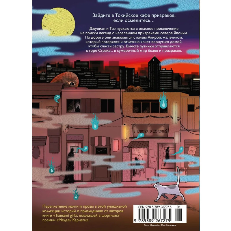 Писатель Джулиан иего подруга, мангака Тиэ, заходят втаинственное кафе со странной управляющей. Там они знакомятся спотерявшимся мальчиком Акирой ирешают помочь ему вернуться домой. Вэтом далеком иопасном путешествии кгоре Страха они соберут для своей книги легенды опризраках, оборотнях идругих мифических существах, которые втех местах известны как монстры-ёкаи. Реальность, выдумка, иной мир вэтой истории смешалось все. Бесстрашным путешественникам придется повстречать ёкаев безобидных ине очень, поесть хрустящей темпуры, пересечь границу потустороннего мира, побывать на Ночном параде ста духов, атакже узнать тайну мальчика Акиры.100 легенд Токийского кафе призраков это увлекательный микс прозы иманги, вдохновляющие истории онадежде, любви, потерях ипризраках! Икто знает, возможно, не все истории из этой книги вымысел!Впервые на русском!