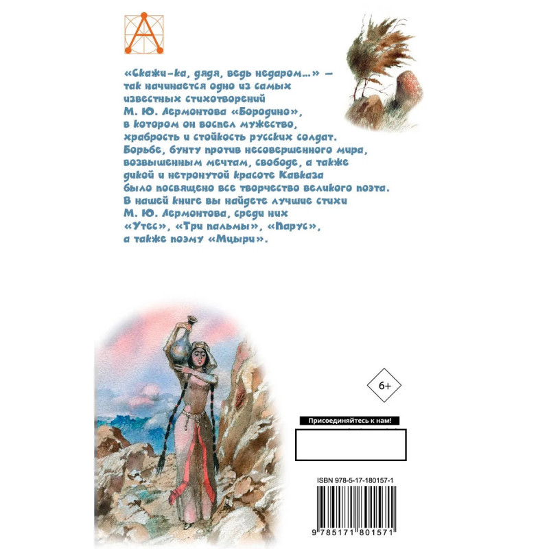 «Скажи-ка, дядя, ведь недаром…» — так начинается одно из самых известных стихотворений М. Ю. Лермонтова «Бородино», в котором он воспел мужество, храбрость и стойкость русских солдат. Борьбе, бунту против несовершенного мира, возвышенным мечтам, свободе, а также дикой и нетронутой красоте Кавказа было посвящено все творчество великого поэта. В нашей книге вы найдете лучшие стихи М. Ю. Лермонтова, среди них «Утес», «Три пальмы», «Парус», а также поэму «Мцыри».