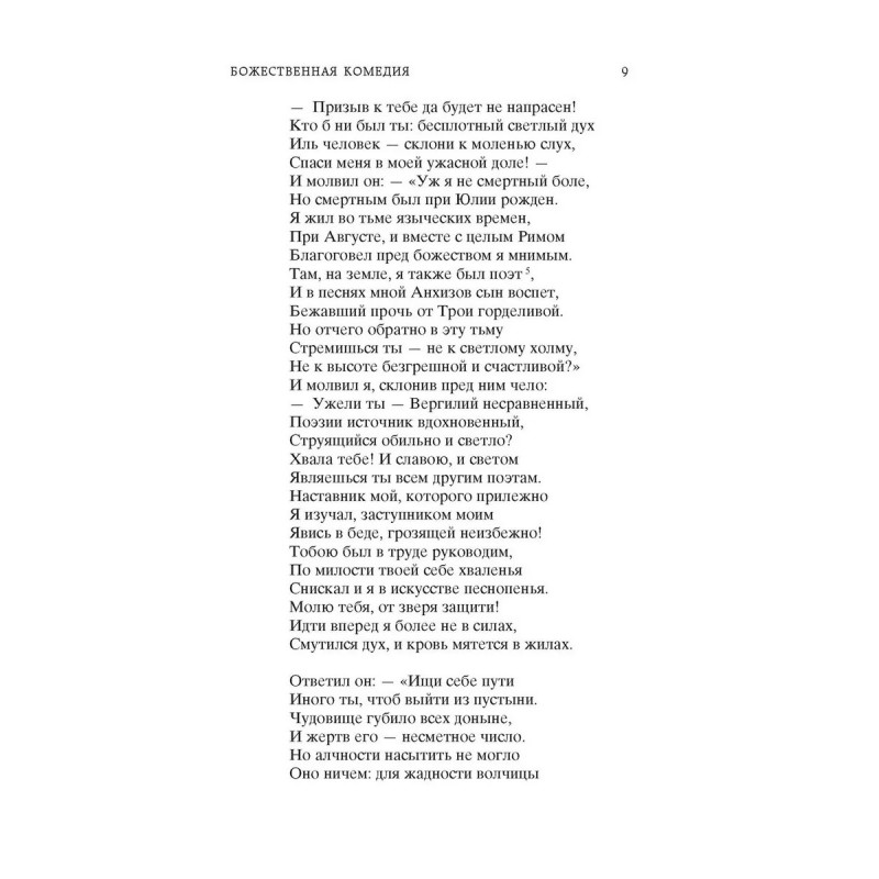 «Божественная комедия», ставшая вершиной творчества своего великого создателя и на все времена прославившая имя Данте Алигьери, является жемчужиной мировой литературы. Прошло более шести столетий со времени ее появления. И все же «Комедия», так называл свою поэму сам Данте, подчеркивая пройденный в ней путь от мрака и скорби к свету и радости, дышит такой жгучей страстностью, такой подлинной человечностью, что она и поныне в умах и сердцах своих читателей живет как полноценное создание искусства, как памятник высокого гения.