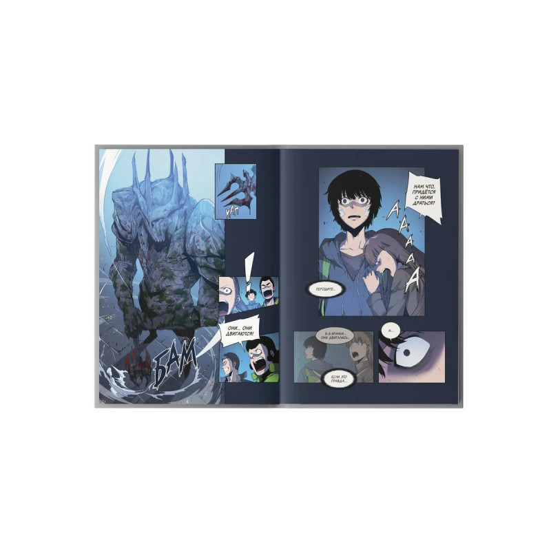 Поднятие уровня в одиночку. Solo Leveling. Том 1 (вебтун). Мир изменился. Повсюду открылись Врата, соединяющие реальность с параллельным измерением. Некоторые люди получили сверхспособности и стали охотниками на монстров, которые скрываются в подземельях и угрожают человечеству.